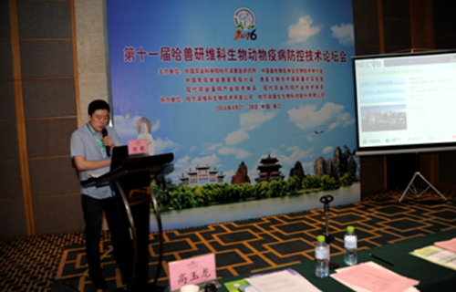 2016年4月27日-28日,由中國農(nóng)業(yè)科學(xué)院哈爾濱獸醫(yī)研究所主辦,哈爾濱維科生物技術(shù)開發(fā)公司、哈爾濱國生生物科技股份有限公司協(xié)辦的第十一屆哈獸研維科生物動物疫病防控技術(shù)論壇會在??谑行呛澈郎缶频曷≈卣匍_。哈獸研副所長王笑梅研究員、湖南省農(nóng)業(yè)廳李萬有總畜牧師、湖北省農(nóng)科院副院長邵華斌研究員、哈獸研科研管理與國際合作處處長馮力研究員、哈維科董事長付朝陽研究員、哈爾濱國生生物科技股份有限公司董事長王云峰研究員出席了本次會議。